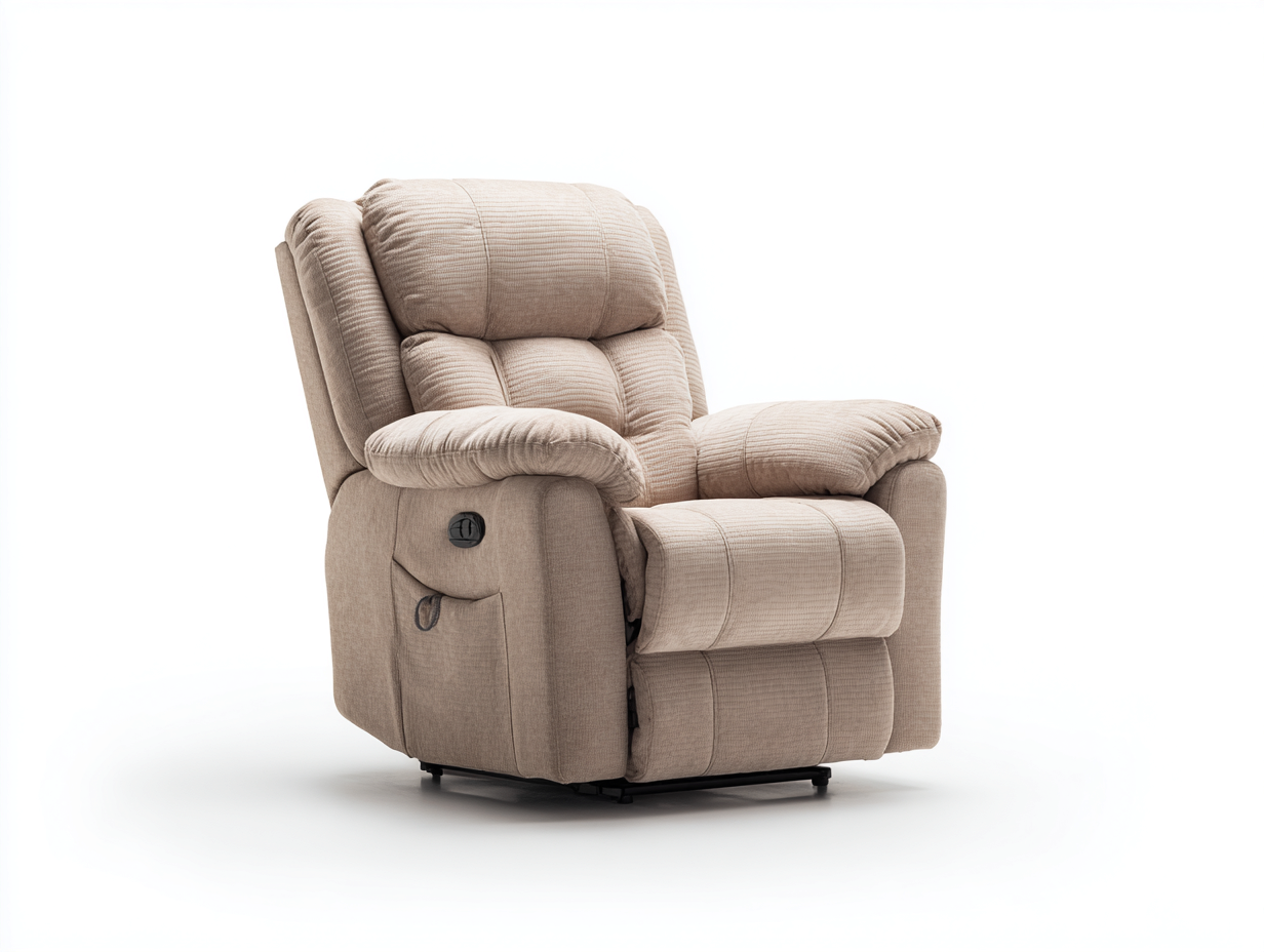 Der Bezug besteht aus Stoff in Beige und verleiht dem Sessel eine warme und wohnliche Optik. Die weich gepolsterte Konstruktion unterstützt den Sitzkomfort und sorgt für eine angenehme Haptik. Die stabile Verarbeitung ist für den regelmäßigen Einsatz im Innenbereich ausgelegt.